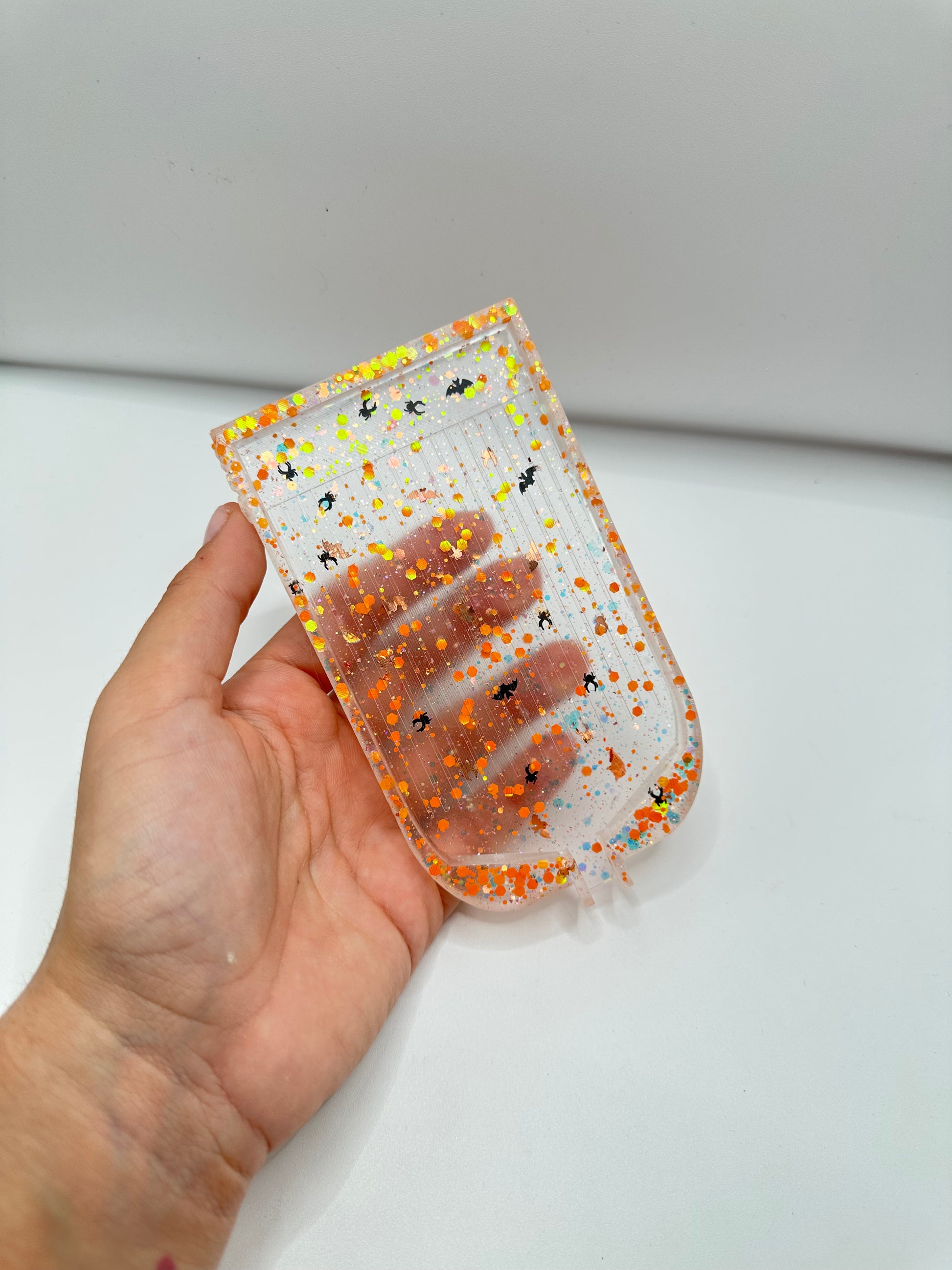 Bandeja mediana barquita abierta con boquilla para Diamond painting hecha a mano de resina.