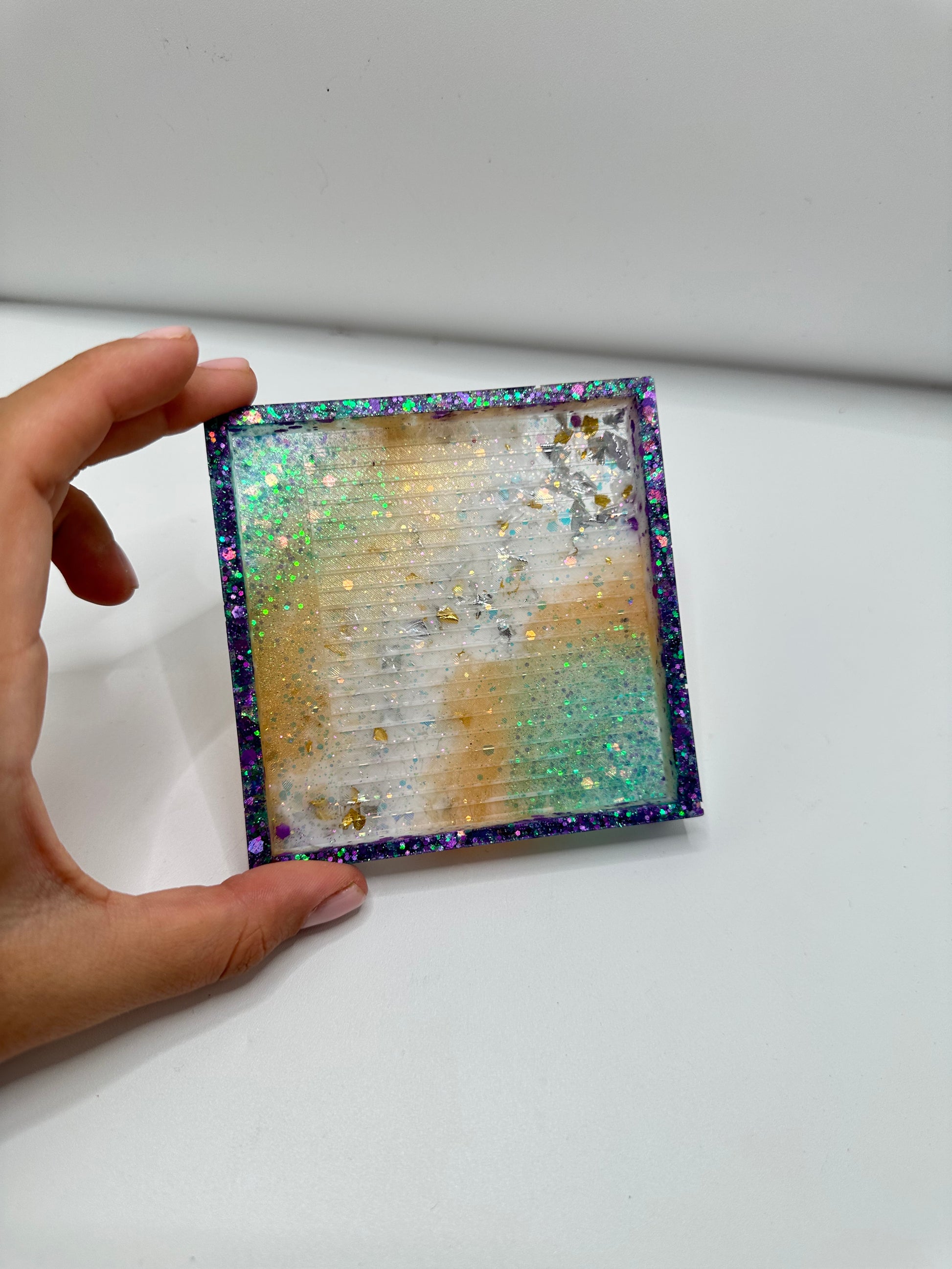 Bandeja grande cuadrada para Diamond painting hecha a mano de resina.