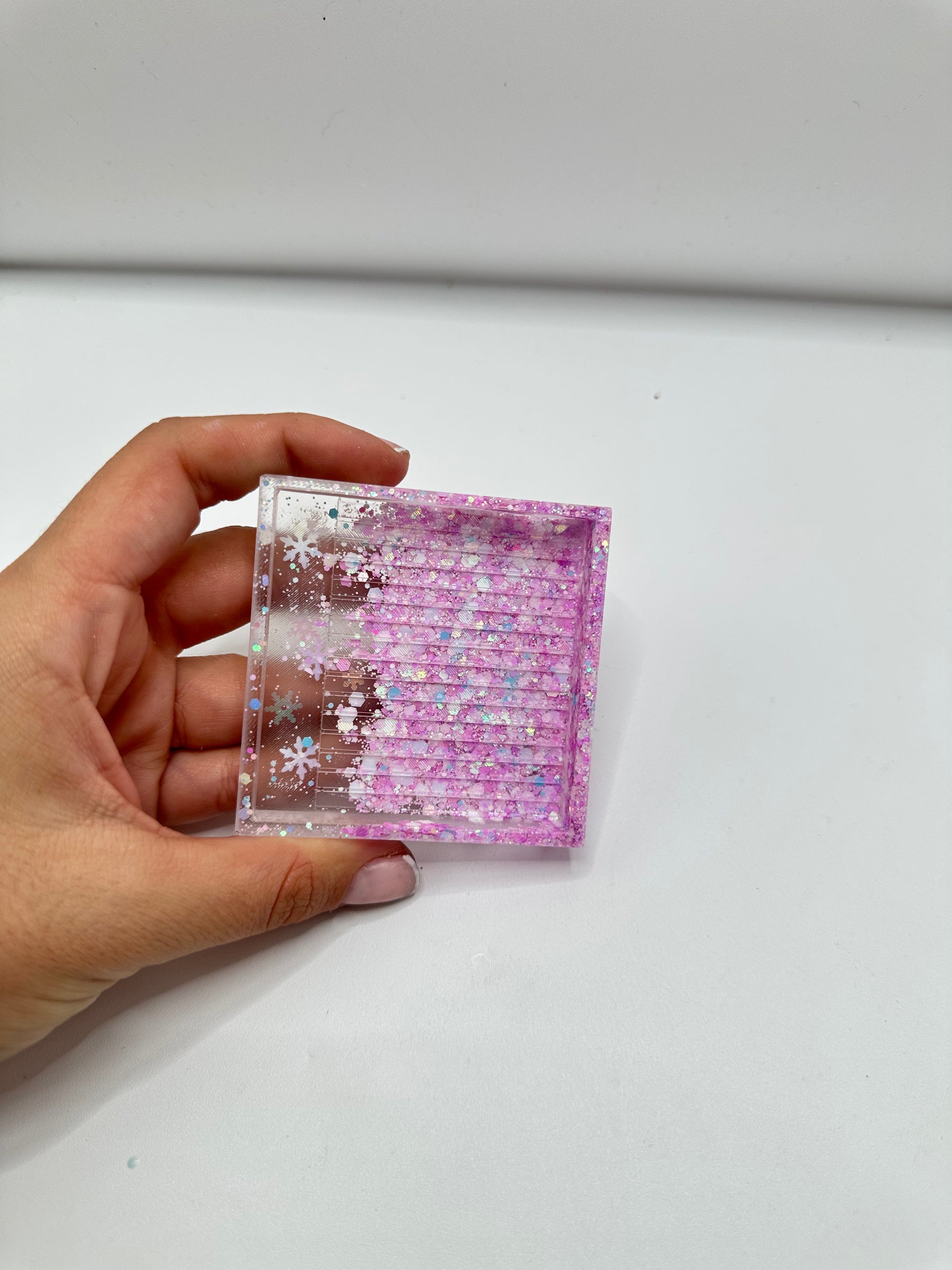 Bandeja mediana cuadrada para Diamond painting hecha a mano de resina.