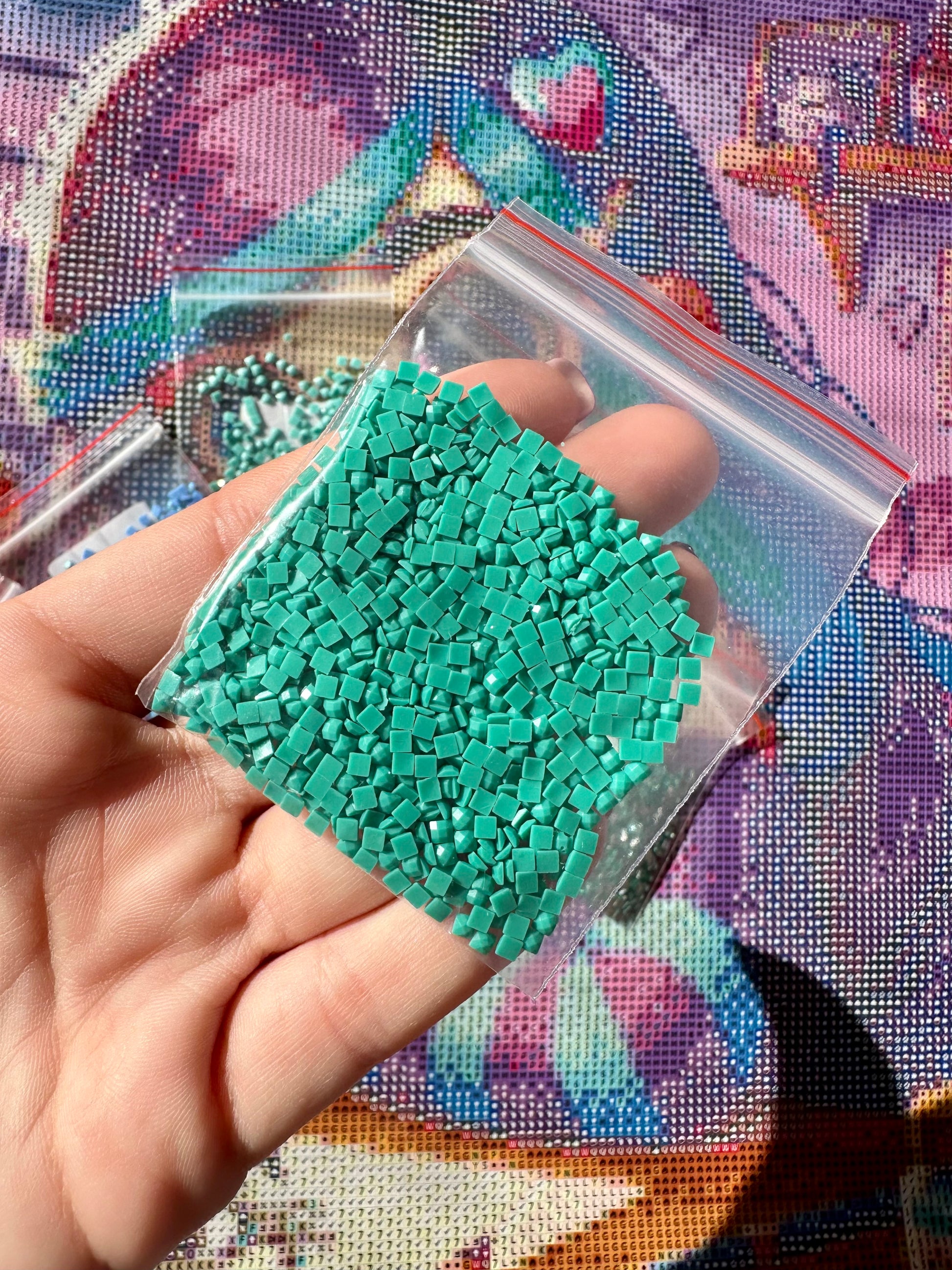 60 colores de diamantes en resina , de los cuales 6 especiales ( 2 abs, 2 polvo de hadas y 2 cristal)